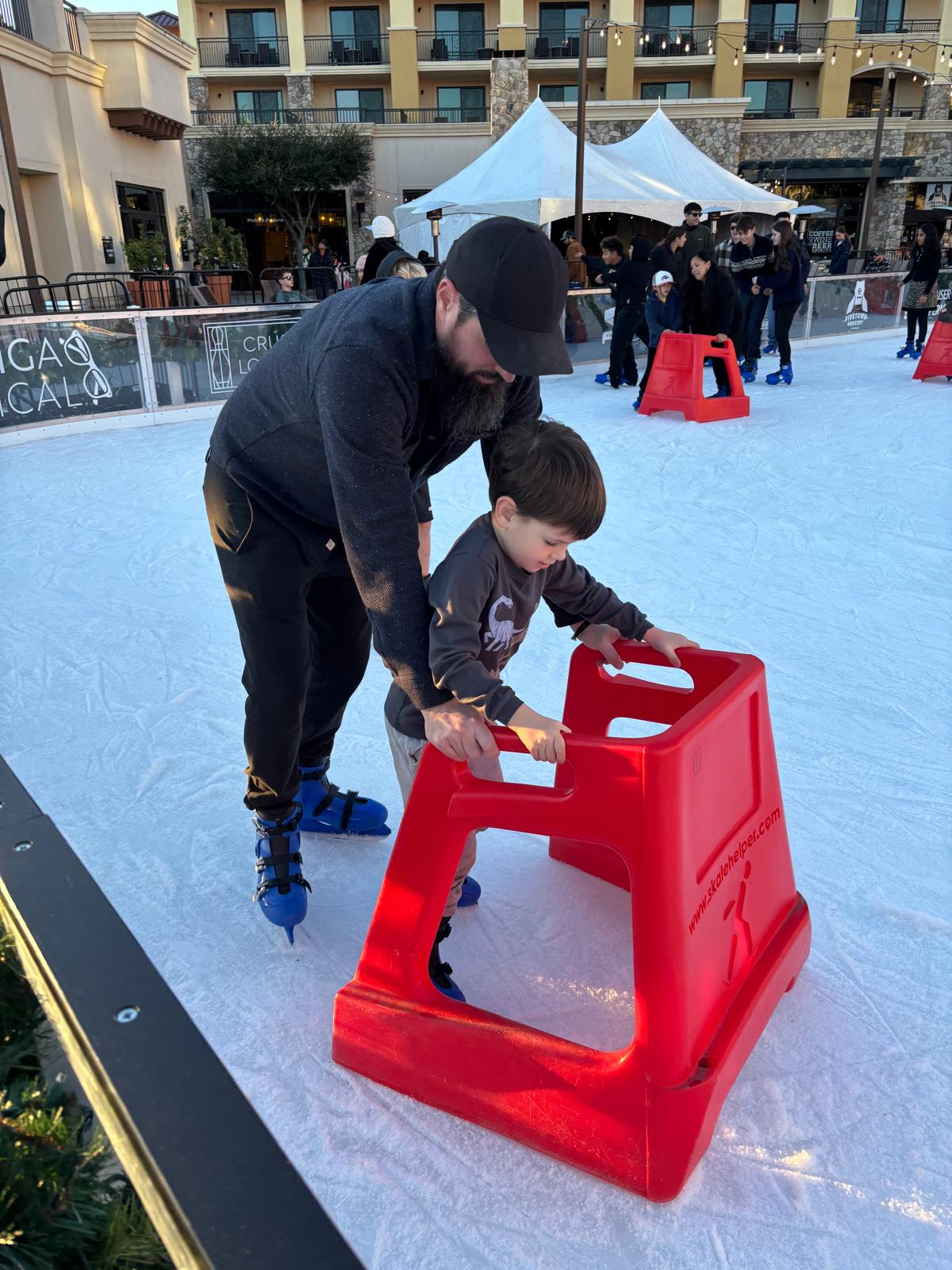We got back in time for Cam and Mike to go iceskating at the temporary ice rink the resort had. This was Cam’s first time on the ice and he really seemed to get the hang of it by the end. It was cute to see them out there together!