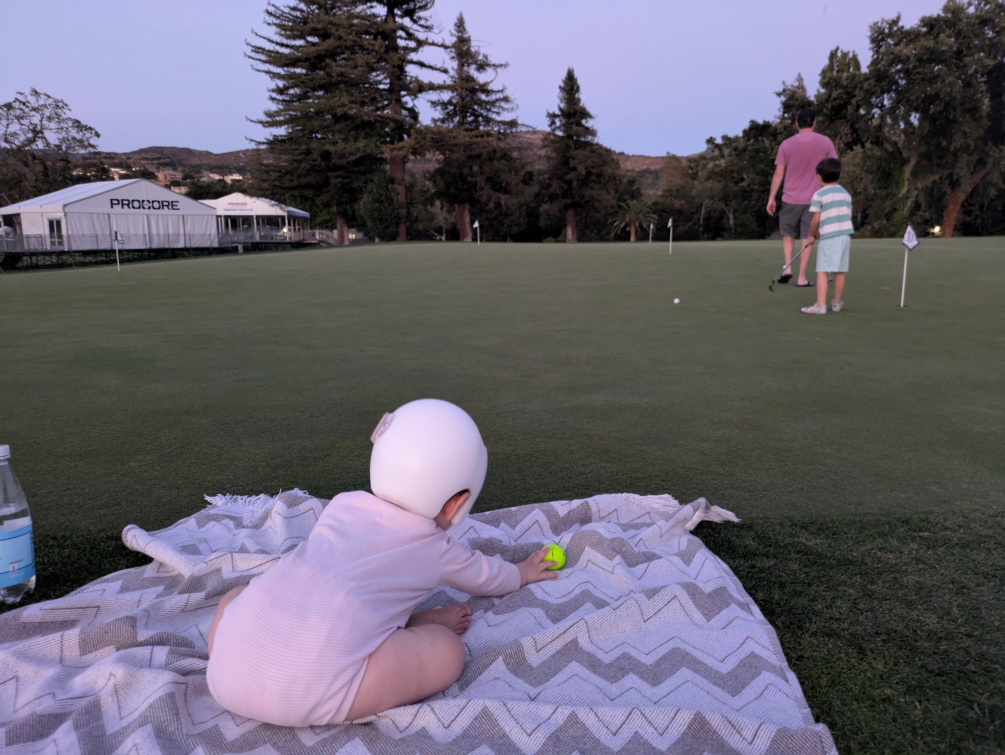 I tried to put Kenna to sleep after, while Mike and Cam took a trip to the punting green outside our room. It turns out, our little girl knew there was fun to be had and wasn’t ready to go to sleep at all. So I grabbed a blanket and trekked outside with her to meet the boys. This turned out to be one of favorite memories from the trip – sitting out at dusk, knocking golfballs around, and giggling. Proof that sometimes the best plans are the ones that are spontaneous.