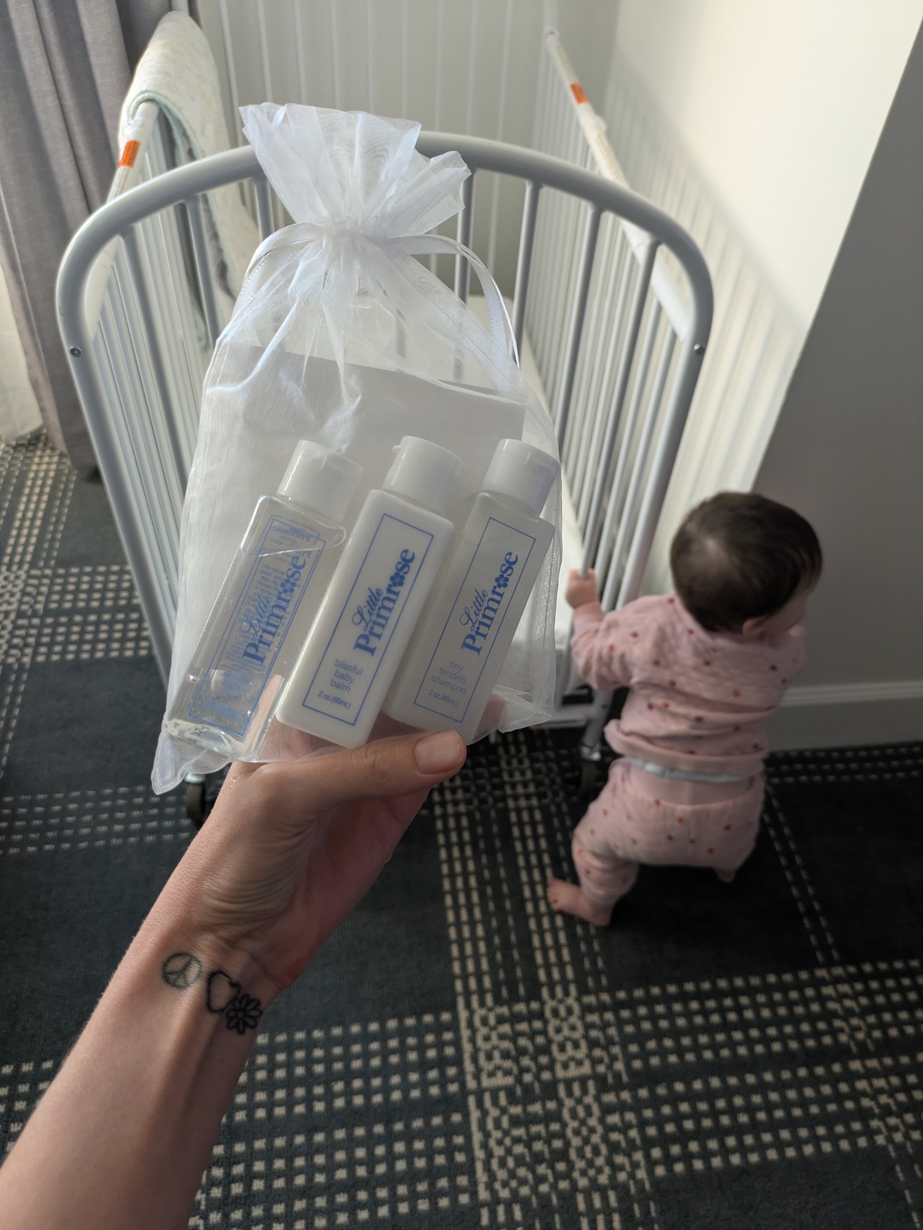 We asked for a crib for Kenna and a cute little bag of baby soap and lotion was delivered with it. I loved that small cute detail but for whatever reason Kenna had one of the worst night sleeps in a long time in that crib…