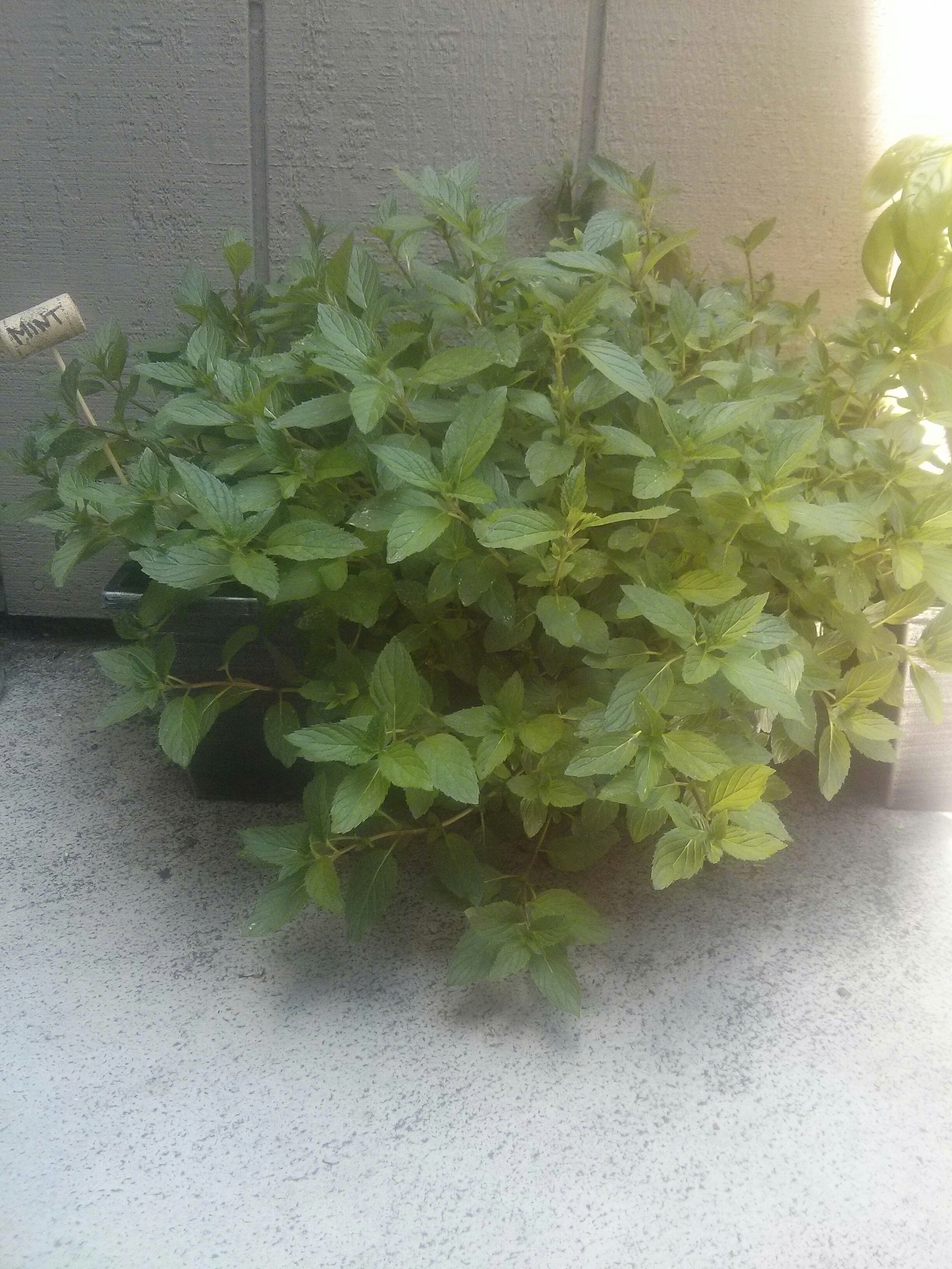 I have been searching for years for something to satisfy my post-meal sweet cravings (sometimes iced tea works but today I already had a ton of coffee so didn’t want more caffeine). Simultaneously, I have been on the prowl for things to do with my out of control mint plant, that is growing like a wild beast on our patio and bombarding into poor Basil’s space. And then I read that chewing a few springs is good for you! So, after lunch, when I really wanted an ice cream the size of my head, I went out and grabbed some mint leaves to plop in my mouth and yaknowWHAT? it worked.