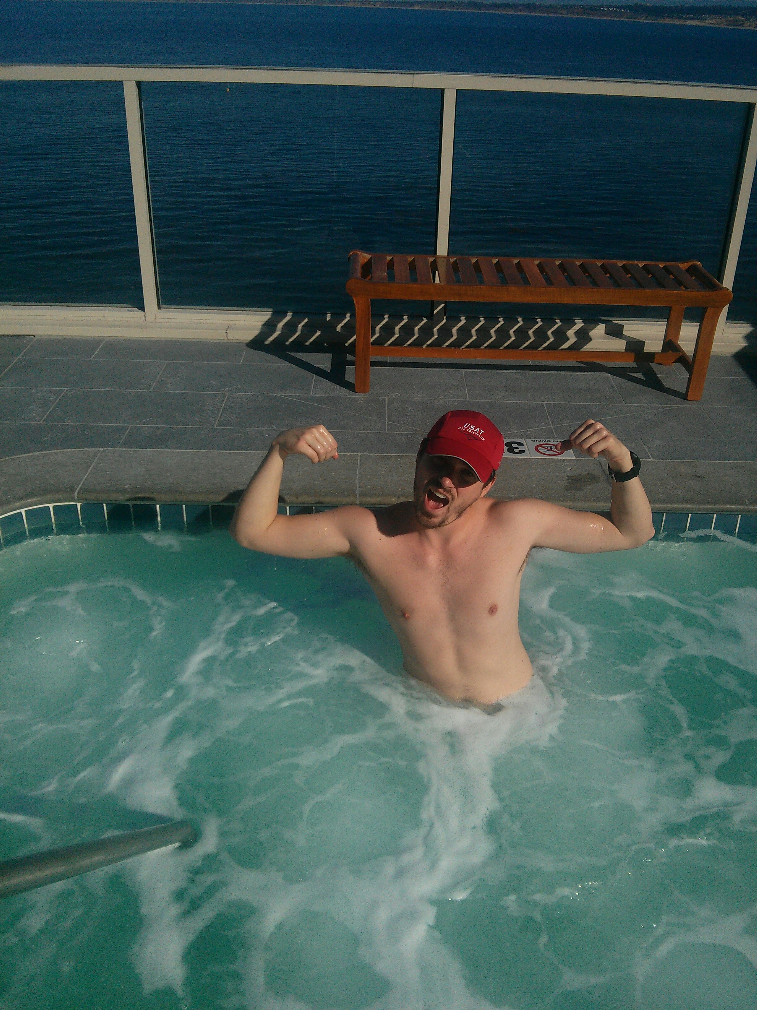When we got there we spent a little over a hour working out/enjoying the view. We were the only ones in the gym for most of the time and it was actually a lot of fun chatting in between reps. (Plus, I got Mike to do a few sun salutations with me!) After our workout we went to change into our bathing suits and grab a quick bite to eat before our appointment for the couples bubbly package!