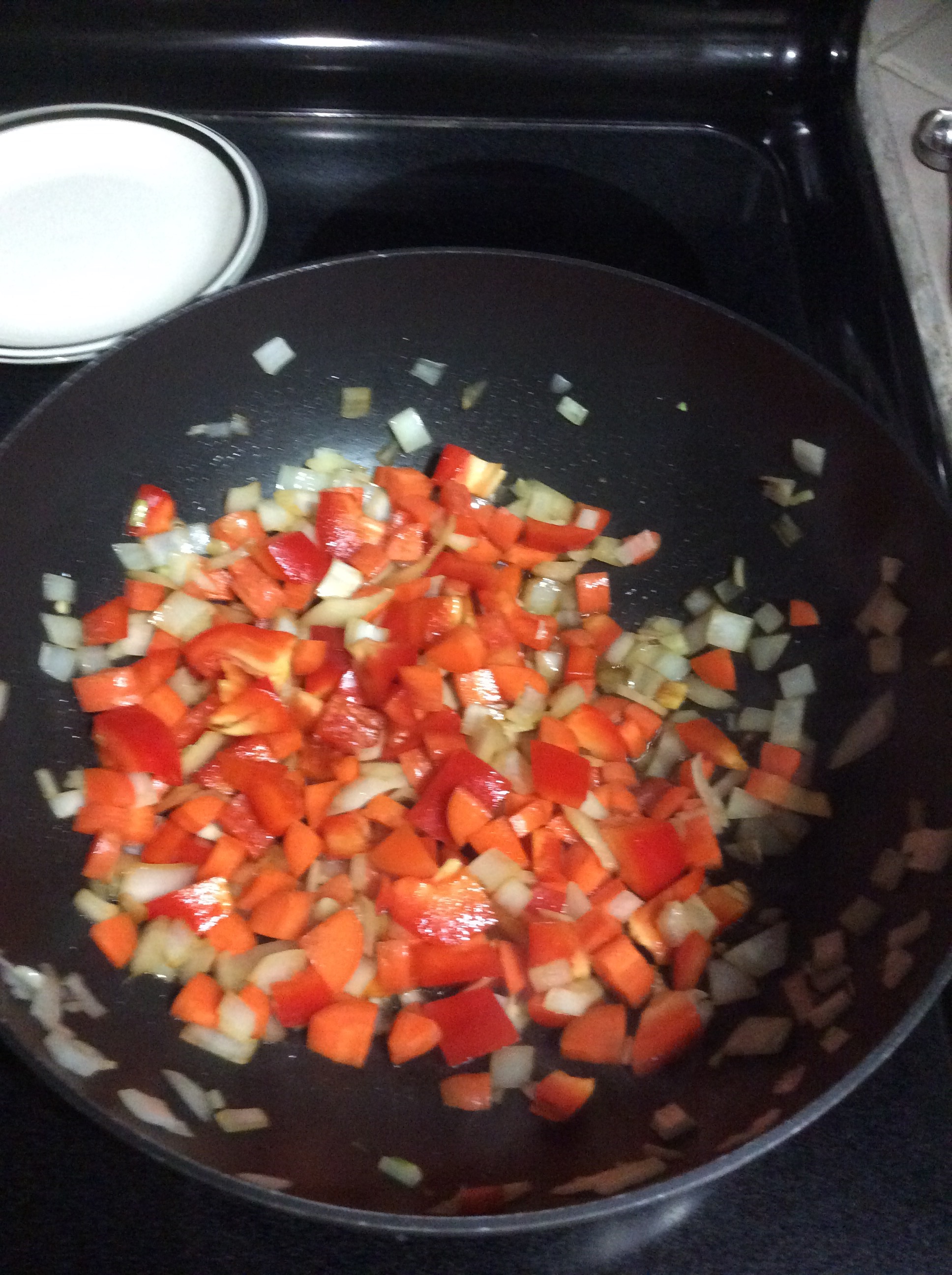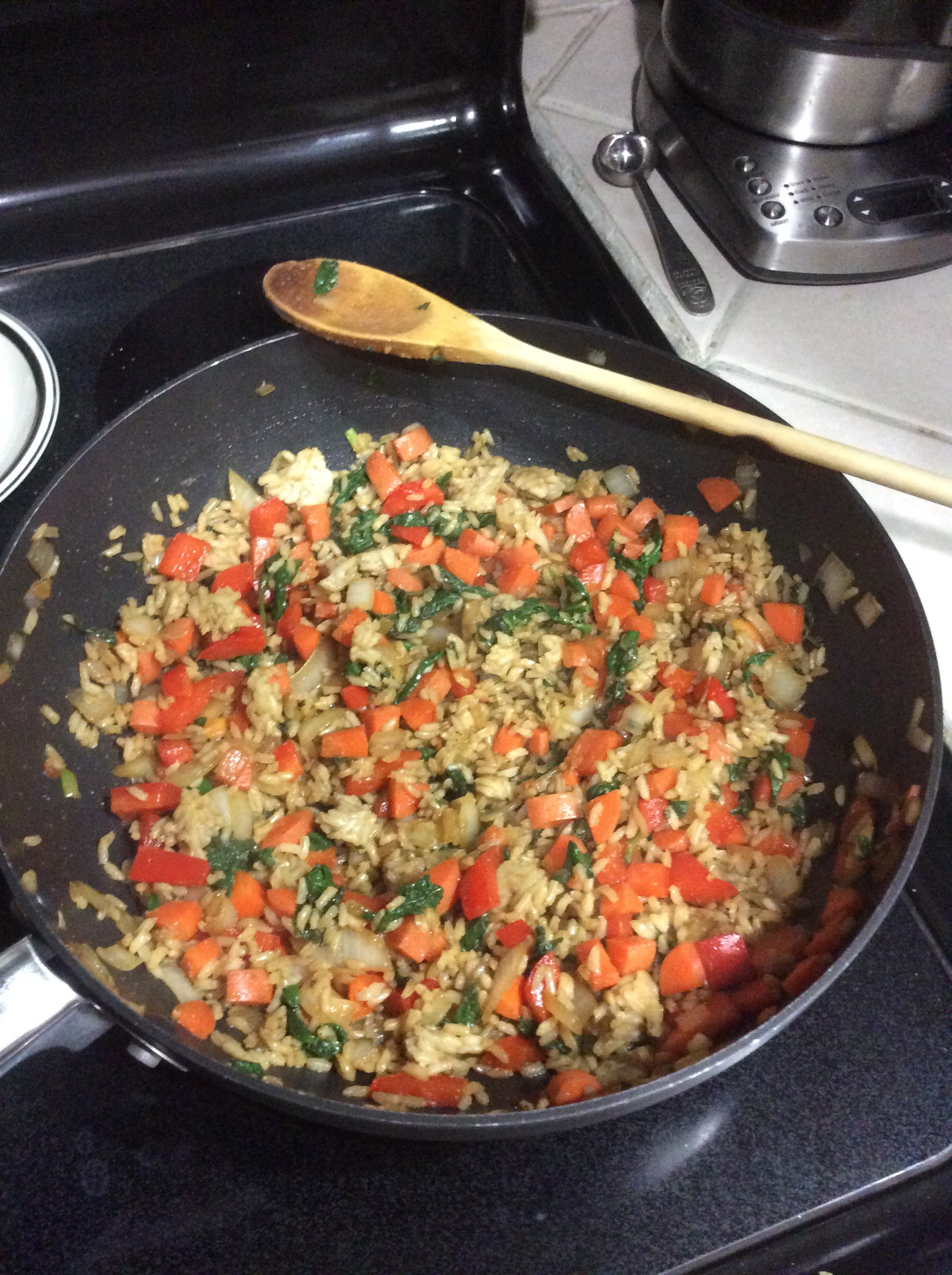 This recipe is quick because I chopped all of the veg for it earlier in the week. Highly recommend for days you know will be busy.