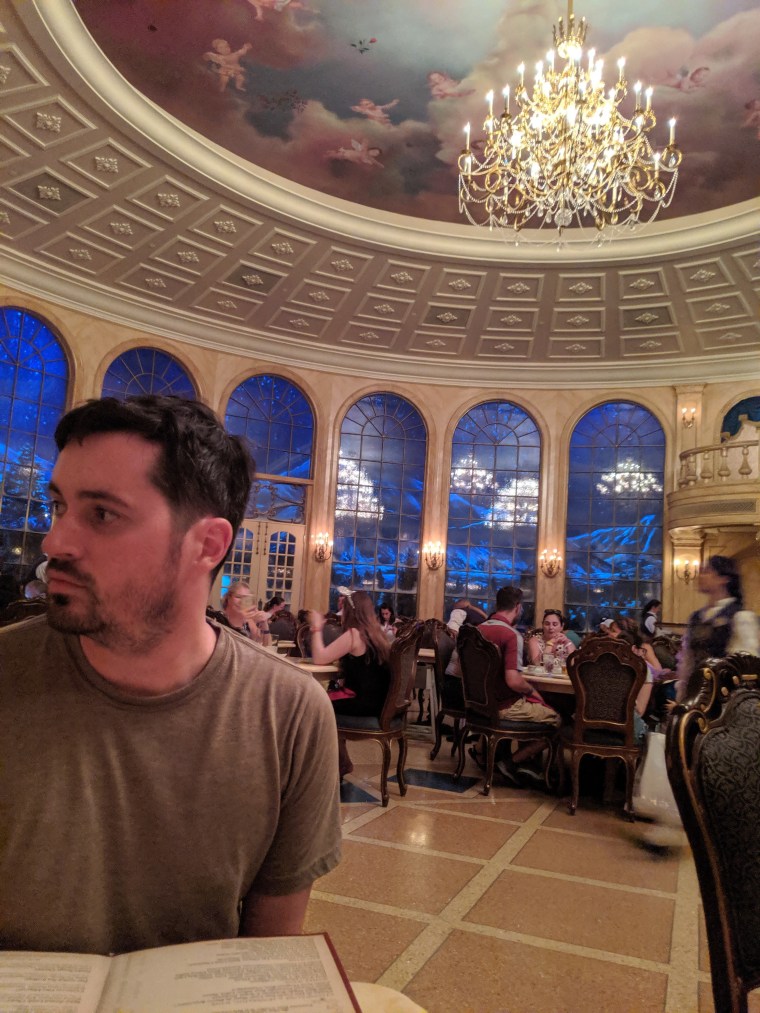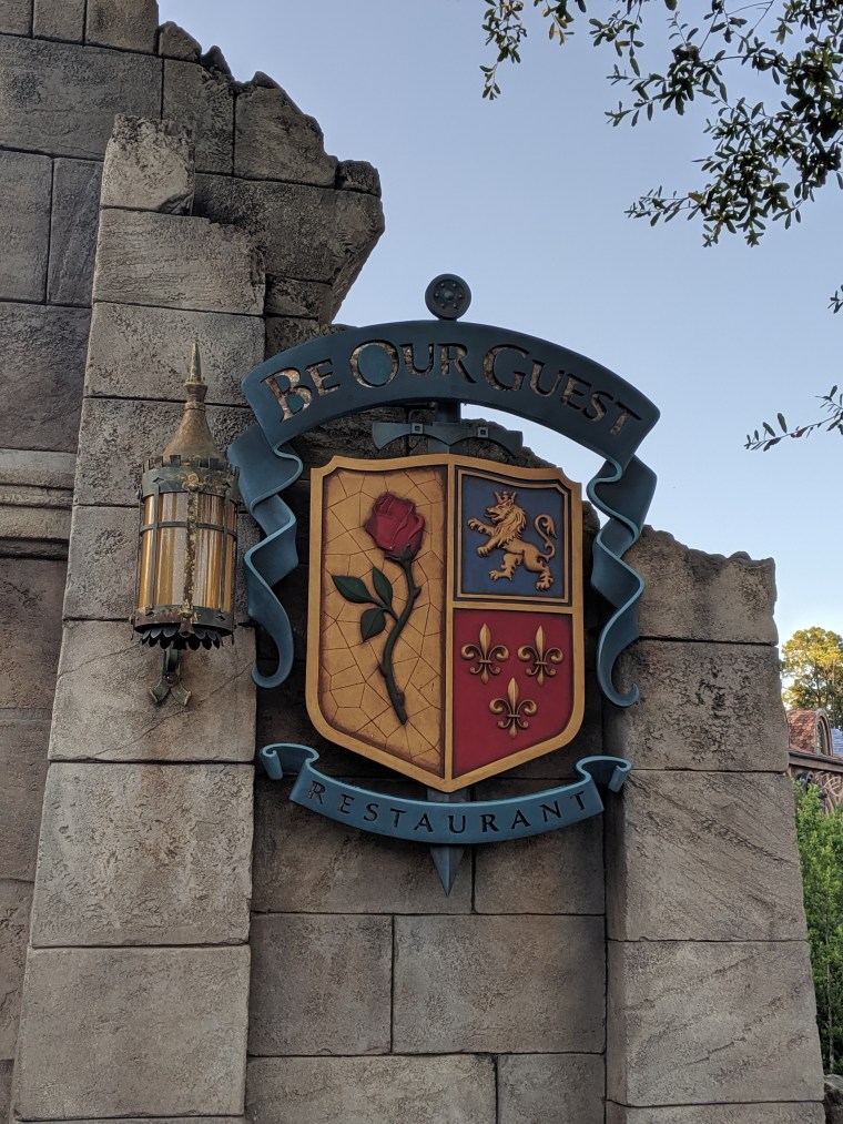 Well rested, we went to dinner that night at Be Our Guest, which I heard was hard to get reservations for, so I was proud of our planning. The restaurant is in the beasts and Belle’s castle and features a 3 course prefixed menu. The big draw though is the “grey stuff” you get for dessert. It is indeed delicious, y’all.