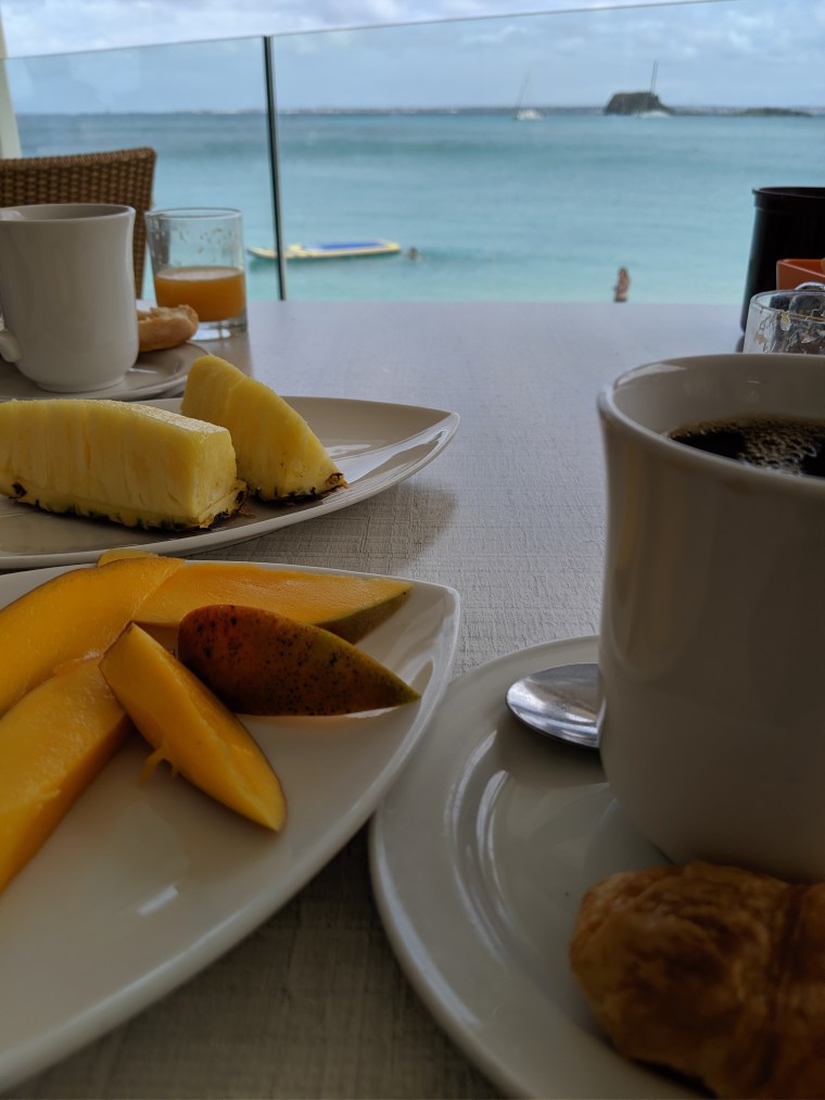 Another glorious thing I took for granted when we were at Grand Case was the free breakfast the hotel provided in the morning (foreshadowing that this was not so on the next island we went to… $$$). We enjoyed coffee/tea, croissants, and fresh fruit seaside before packing our stuff and heading out to explore.