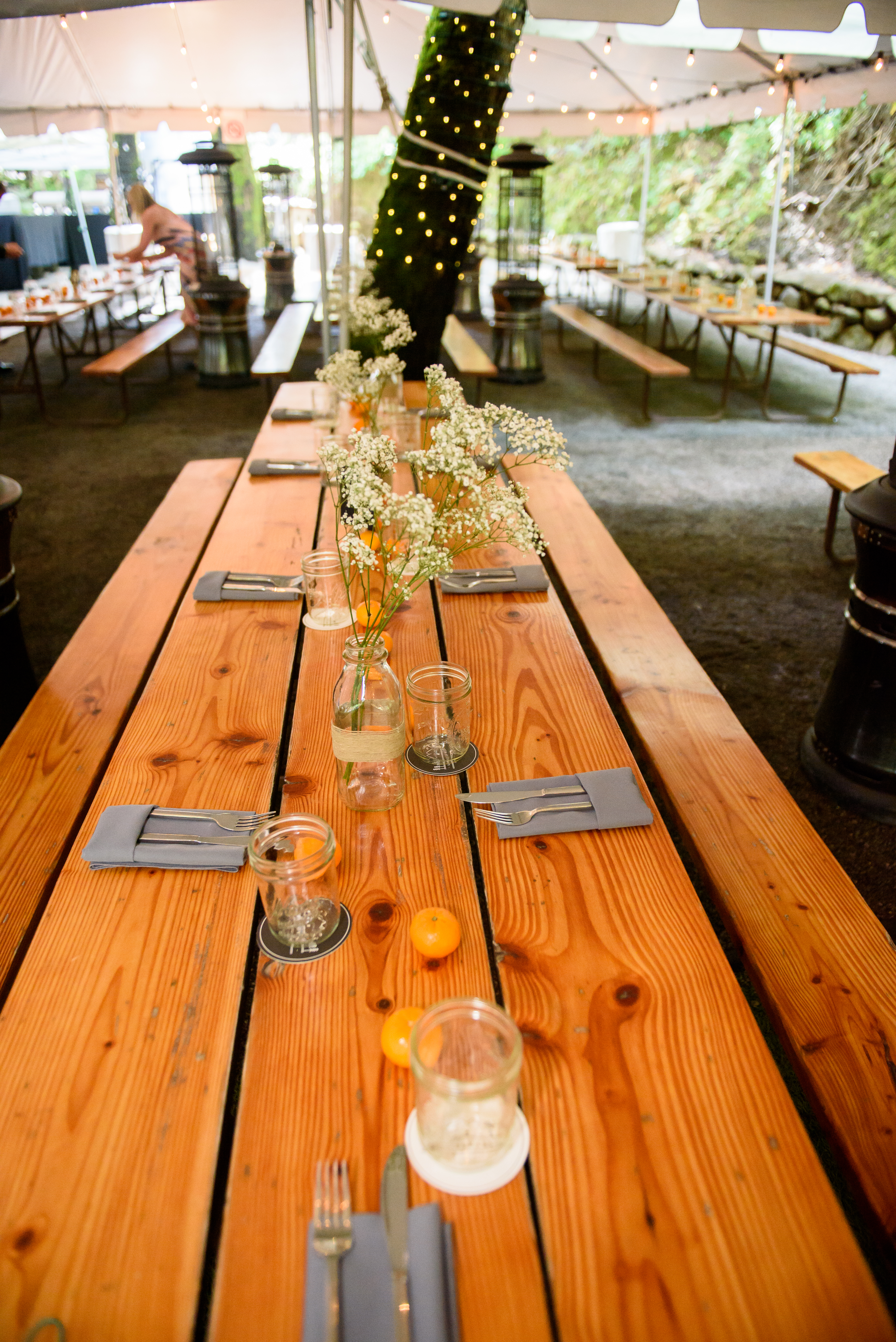 Our centerpieces were thought of and crafted as a collaborative effort between myself, Mike, my mom, and two of my friends, Allysa and Leslie. We were fine with the buffet style meal the venue would provide – which was BBQ – and aside from picking the side dishes, we didn’t think more about it. For us, a huge perk about a wedding a Saratoga Springs was that, if you picked the house options, the wine and beer were unlimited. (Our one splurge was for an upgraded keg because I love an IPA and I’m picker about my beer than my wine.)