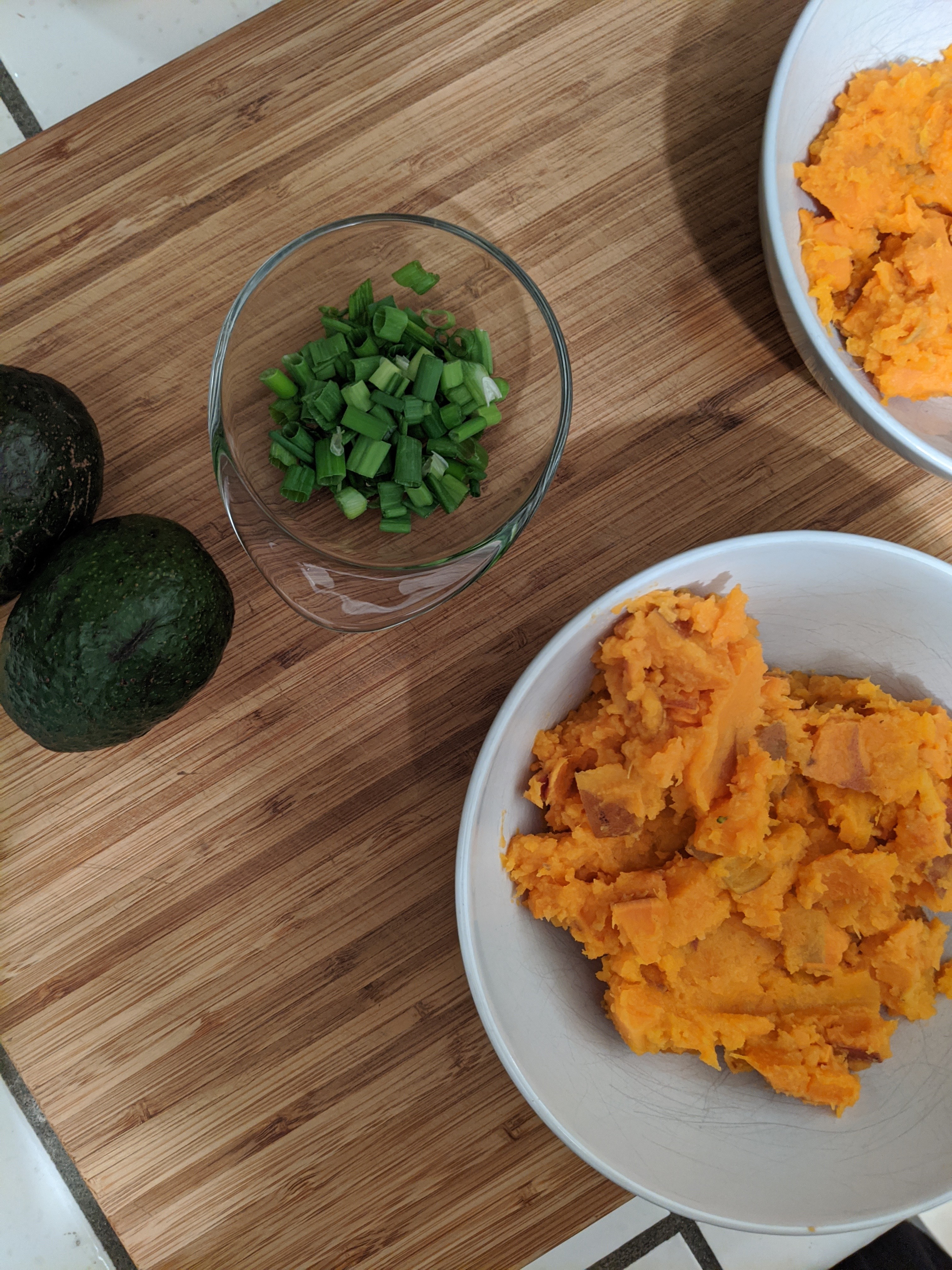 Mike doesn’t LOVE chili like I do, so I steam and mash sweet potatoes to use as a base. This makes it less of a “soup” consistency and more of a hearty meal.