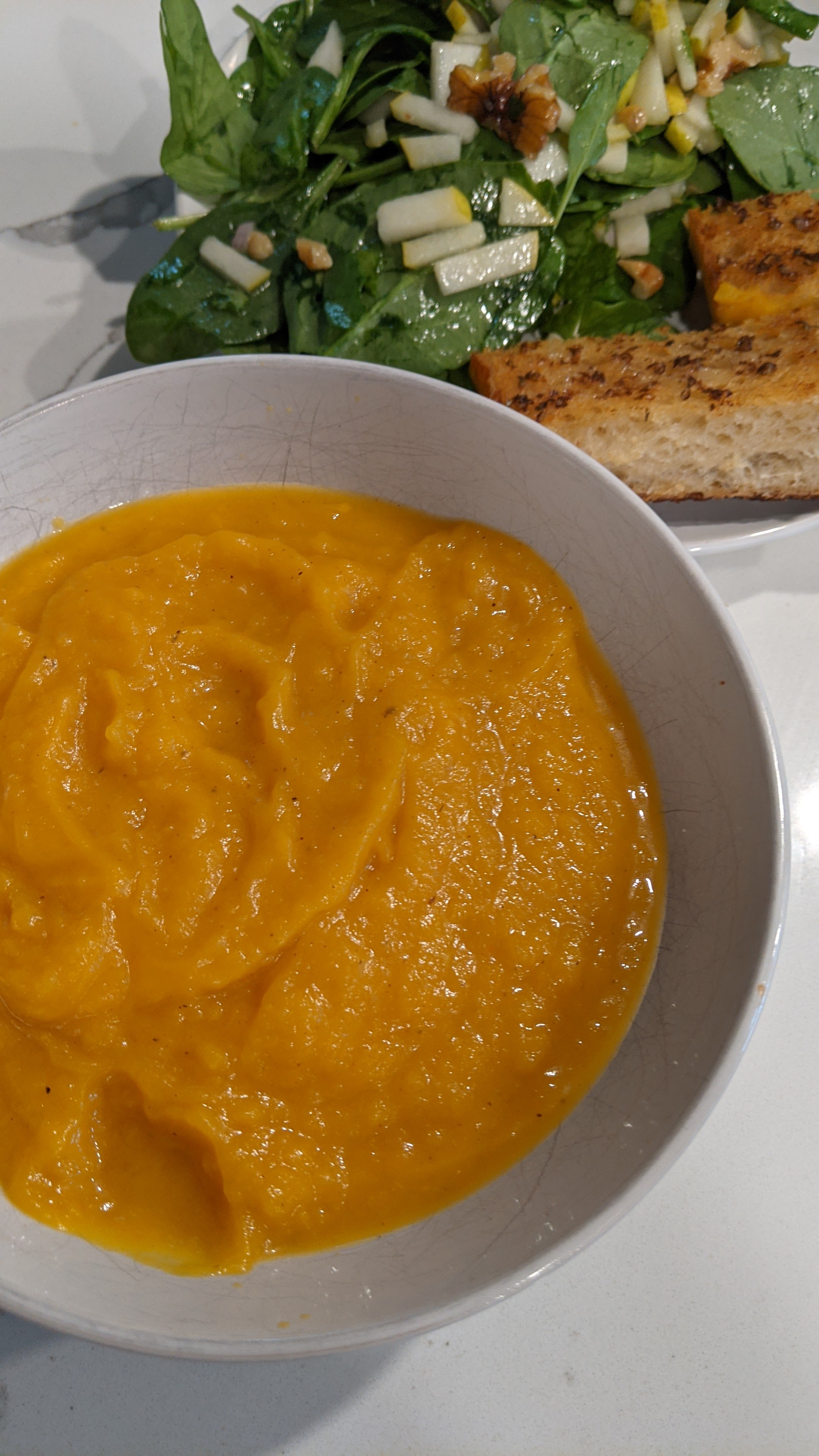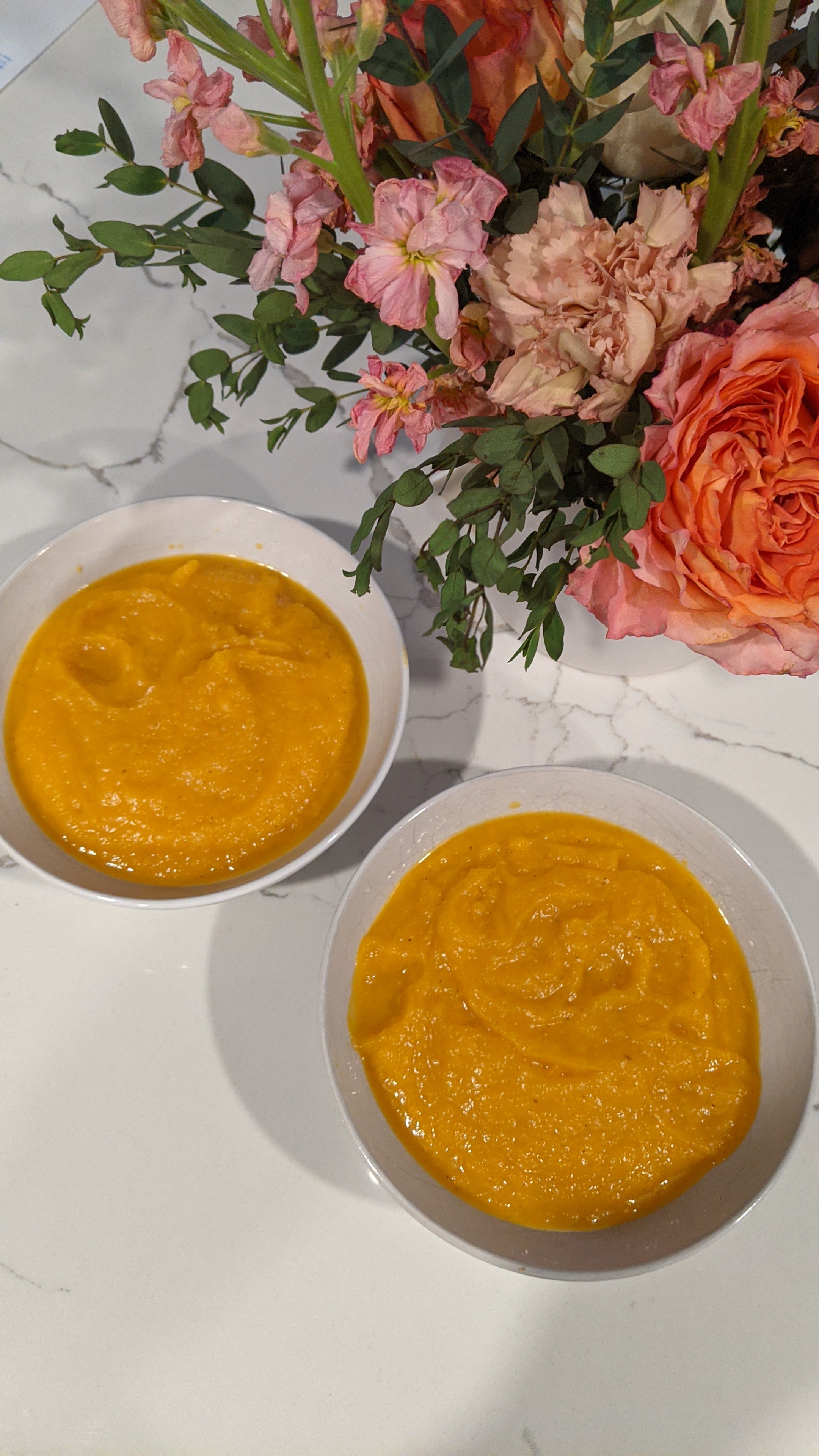 Oh it is feeling like fall in California and I am HERE FOR IT. I’ve been making 1-2 cozy soups a week, which might be one of the few perks of covid: extra time to make homemade meals. So far we’ve ranged from grain soups (1 with quinoa and 1 with farro), to a coconut lentil soup (similar to this one), to the real autumnal winner: a butternut squash and sugar pumpkin soup.