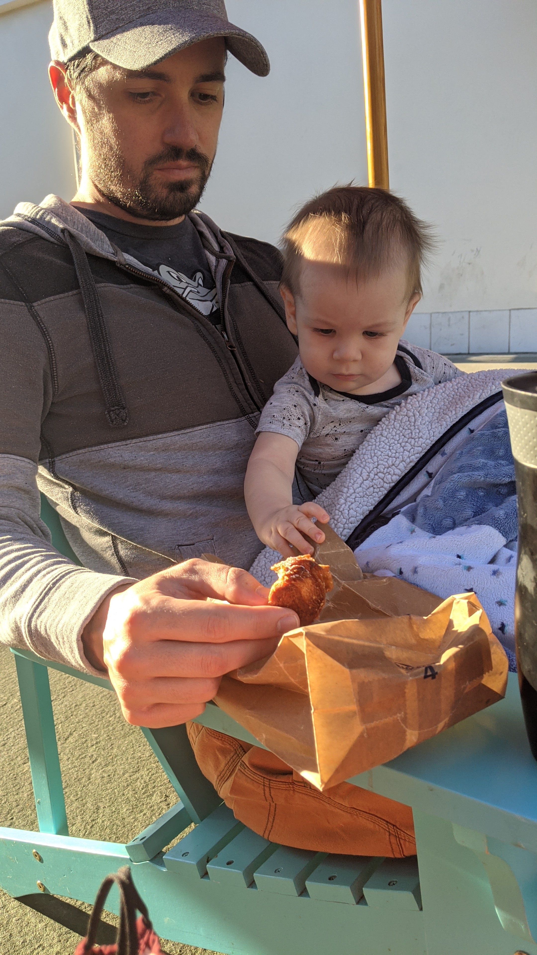 After disinfecting the chairs, we take Cam out of the stroller, bundle him up in a blanket, and enjoy our breakfast with him snuggled in one of our laps. It’s something that we probably would have taken for granted in life before COVID… but given the time and the limit of things you can safely do outside your house, it’s become something really nice to look forward to doing together.