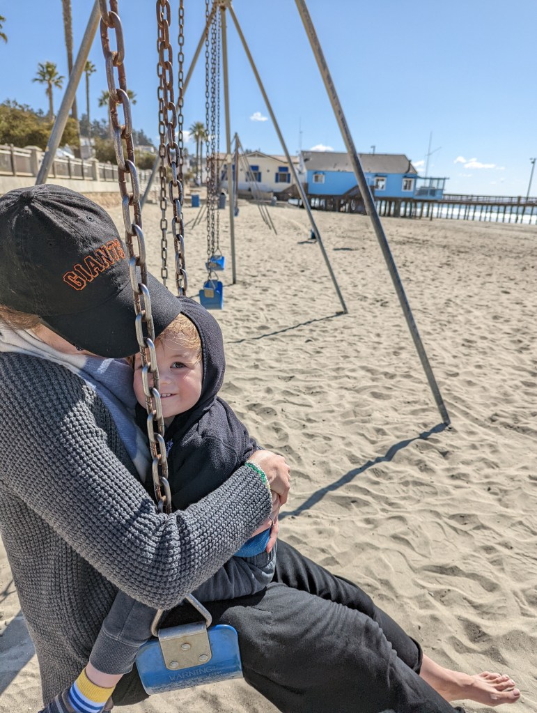 Sunday was slightly better weather so we decided to venture down to Avila beach. On our way there, we popped by the iconic Madonna Inn to show Barb & Dan all of the pink madness. Which, Cam was not really a fan of for some reason, so off to the beach shortly after it was. Fun fact: Avila beach has swings and a slide so it great to do with little ones! Cam would have played on the slide all day but we convinced him to come hang out on a picnic blanket with us, where he played with some new dinosaur toys by ducking them in plastic cups of ocean water, saying “WAWA!” “RAWR!”