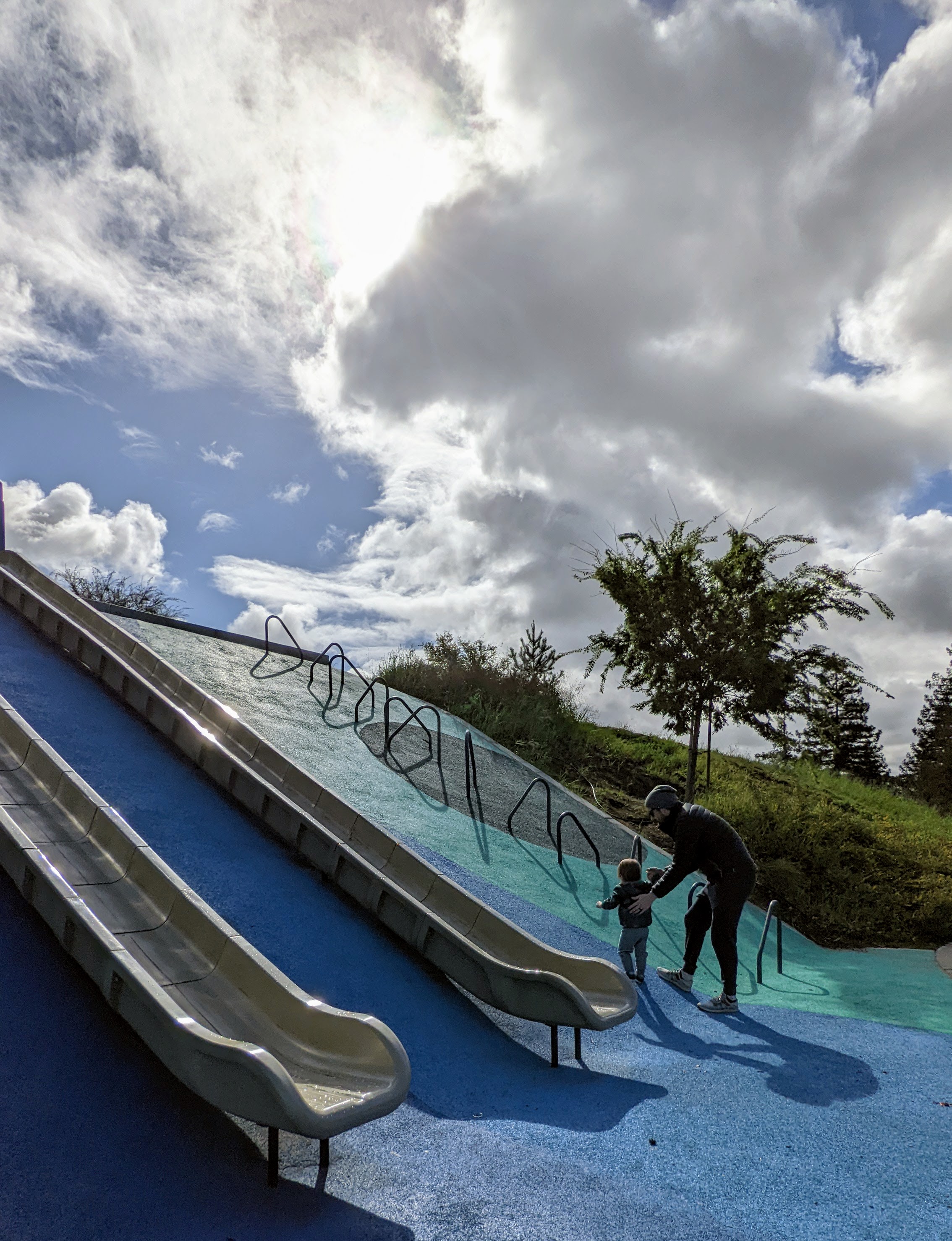 That afternoon we went back to our magical nearby park and spent at least an hour “racing” down these two side-by-side, long slides. Cam loveeed crawling up the hill and then speeding down them by himself, with one of us at the bottom waiting to catch him. It was so fun and had to count as at least a small work out with all of our laughing and climbing.