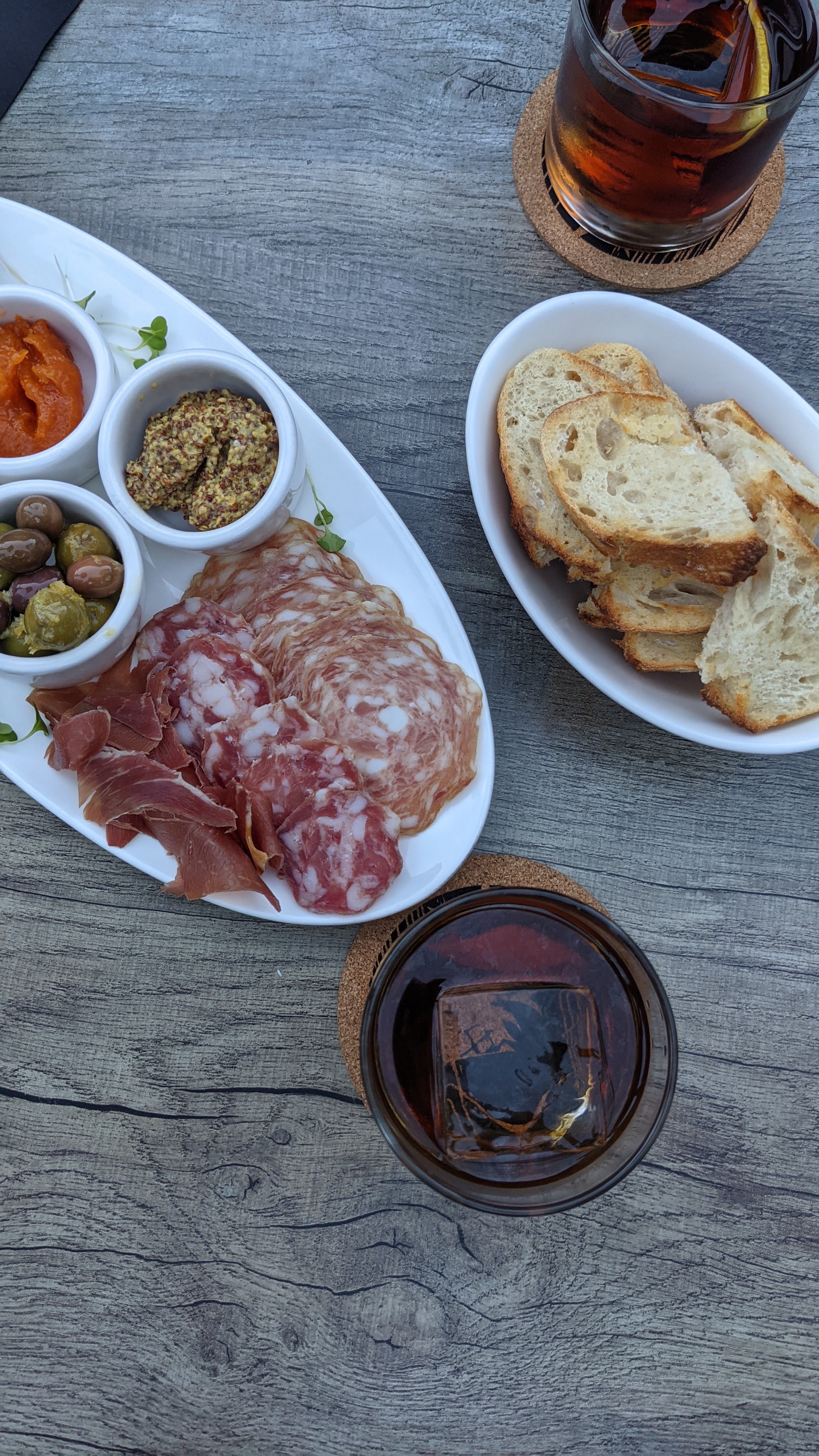 We checked in, dropped off our overnight bags, and walked to an amazing craft cocktail bar Soda Works (another recommendation from Ally actually – love good neighbors!). Here we indulged in boozy, bourbon-y drinks and a great charcuterie plate. Sharing an app and sipping on drinks brought me back to so many great vacations we’ve had (like Portland and Chicago and Sebastopol). Mike and I really thrive in trendy restaurants. ๐