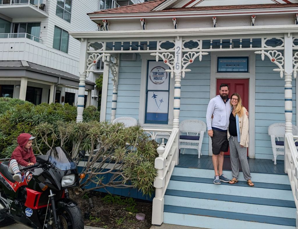 Next we discovered the TOP GUN HOUSE a few blocks away. Label me nerdy but I absolutely love this behind-the-scene Hollywood kind of thing. (I’m probably one of the few people who actually watched the commentary versions of dvds when that was a thing!) Of course we stopped to snap pictures and look inside the house and google the house in the movie and just generally take in the fact that Tom Cruise walked on the same stairs (ok ok, maybe that was just me…). For Cam’s entertainment, it helped that there was a motorcycle he could “ride” out front.