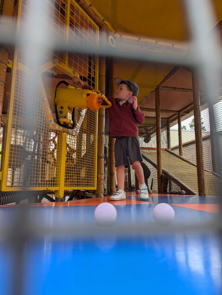 Cam discovered a multilevel play area with ball-shooters? (not sure about that terminology) next and spent over an hour in there playing. Mike and I sat outside in the shade eating fries in amazement of how long he was entertained.
