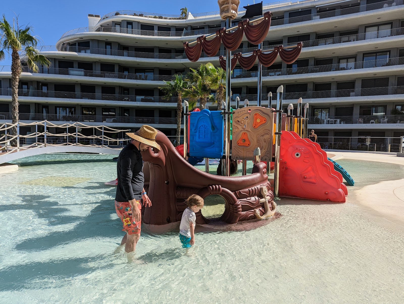 We finally arrived in Alicante and drove about 15 minutes, a welcome short distance after long travel, to check into our amazing airbnb. The place we booked had a little waterpark pirate ship feature in the kids pool area that we were excited about. Traveling with Cam obviously meant we would be spending more time at our accommodation vs. out on the town so it was great to stay somewhere with something exciting for him.On our first night we found a small beach shake restaurant and cheers’d the official kick off of our vacation over cava, spicy potatoes, and jamon with melon.
